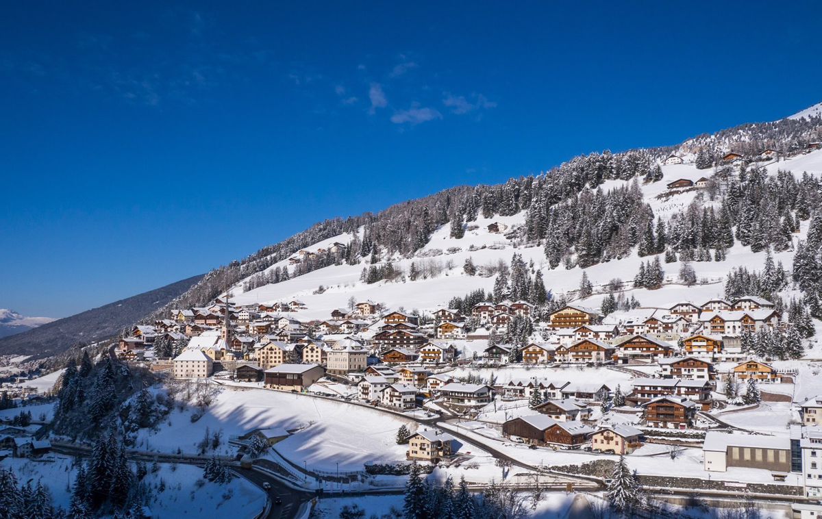 Het dorp ligt op 1060 meter hoogte aan de zonkant van het dal met prachtig uitzicht op de imposante rotsmassa van de Langkofel. Het dorp heeft uitstekende verbindingen naar de hoger gelegen ski regionen. De dalstations van de verschillende bergbahnen bevinden zich in en rondom het centrum van het dorp- en naar de nabijgelegen plaatsjes Selva en Ortisei.